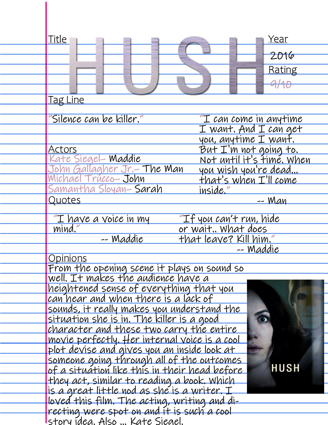 asl, home invasion, horror, horror movies, hush, kate siegel, movie, review, sign language, silence, survival